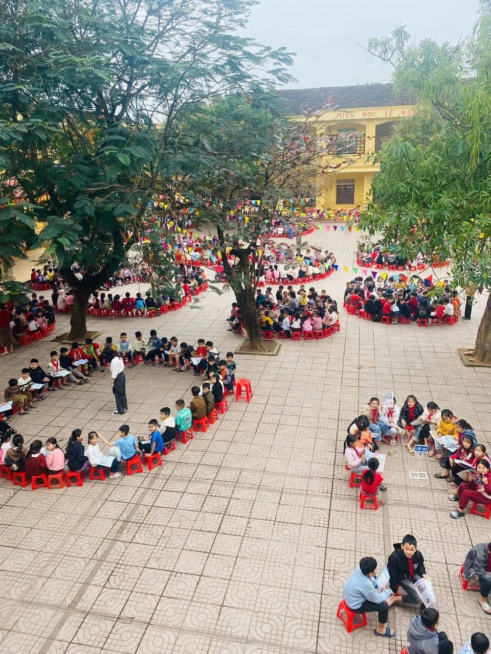 Một hình ảnh có 102 của gần 1400 em học sinh trường trong giờ sinh hoạt sao, “Đọc và làm theo báo Đội”. Qua đó giáo dục các con luôn phải đoàn kết, thể hiện mỗi các nhân là 1 sức mạnh góp phần tạo nên một tập thể vững mạnh và phát triển.