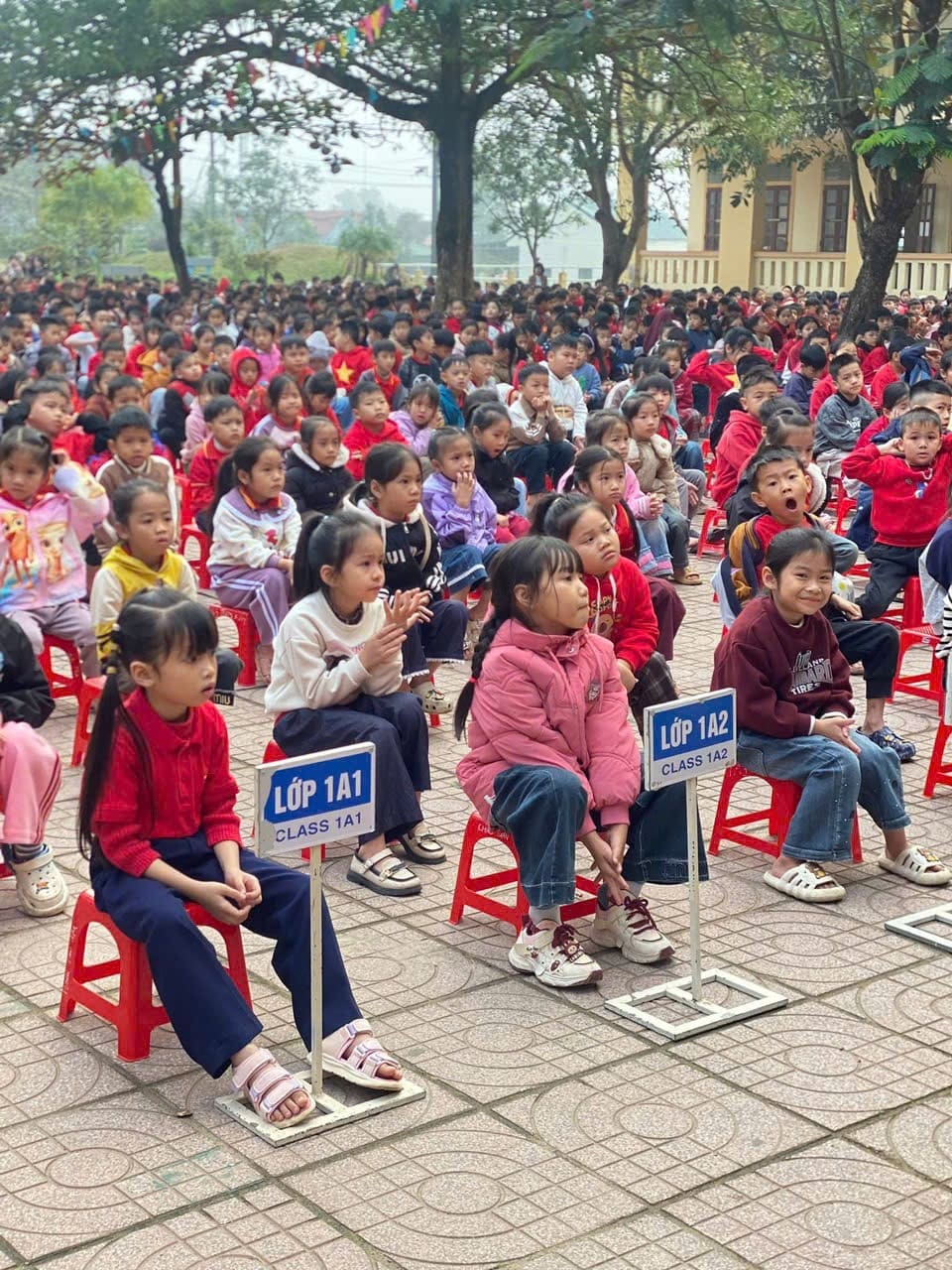 Một hình ảnh có 102 của gần 1400 em học sinh trường trong giờ sinh hoạt sao, “Đọc và làm theo báo Đội”. Qua đó giáo dục các con luôn phải đoàn kết, thể hiện mỗi các nhân là 1 sức mạnh góp phần tạo nên một tập thể vững mạnh và phát triển.