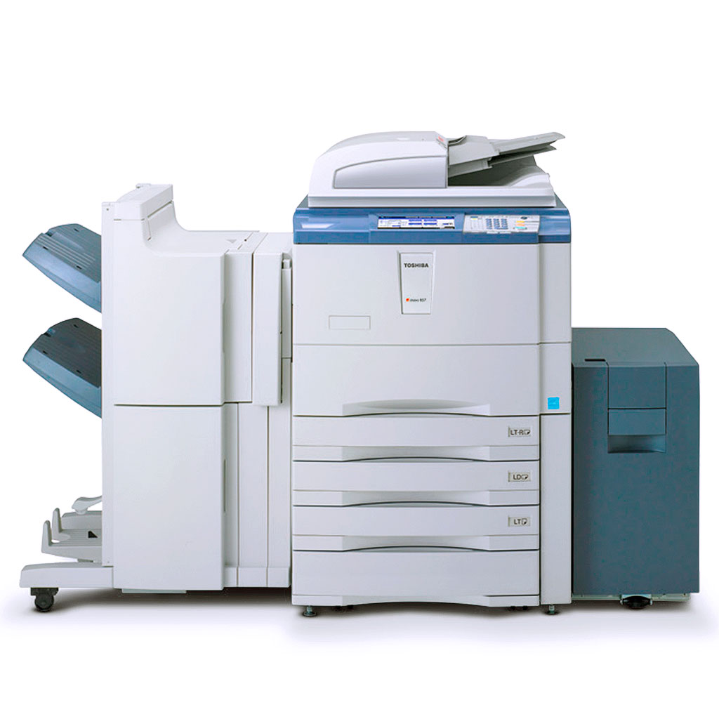 Máy photocopy TOSHIBA e‑STUDIO 856 / 857 là dòng máy đa chức năng (MFP – Multi Function Printer) A3 đen‑trắng, được thiết kế dành cho văn phòng lớn, trung tâm dịch vụ in ấn hoặc doanh nghiệp có nhu cầu in sao chép khối lượng rất lớn. Với tốc độ lên tới 85 trang mỗi phút khổ A4, độ phân giải bản in cao và khả năng kết nối hiện đại, dòng máy này giúp tối ưu hóa quy trình làm việc, giảm thời gian chờ và tiết kiệm chi phí vận hành.